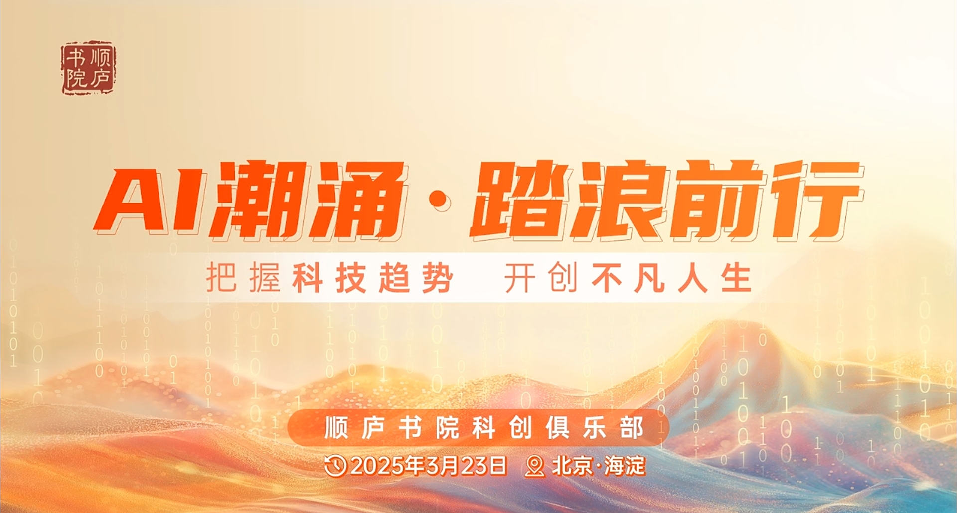 2025年年初,中国自主研发的大模型DeepSeek在全球引发广泛关注,成为推动人工智能技术应用的重要力量。为探讨AI技术的核心逻辑与行业前景,顺庐科创俱乐部特别筹备第39期活动,以“AI潮涌·踏浪前行”为主题,邀请多位行业专家共话AI未来。